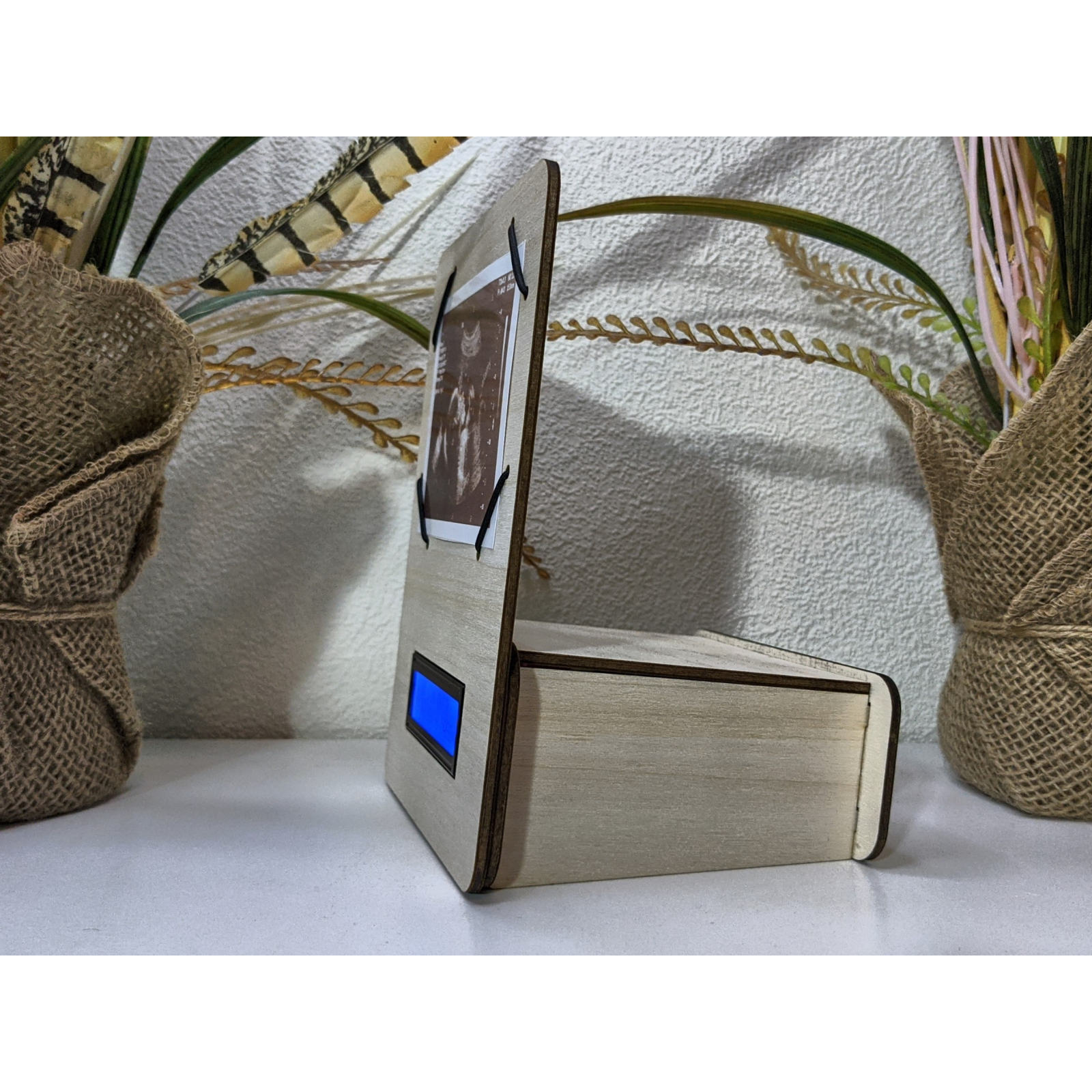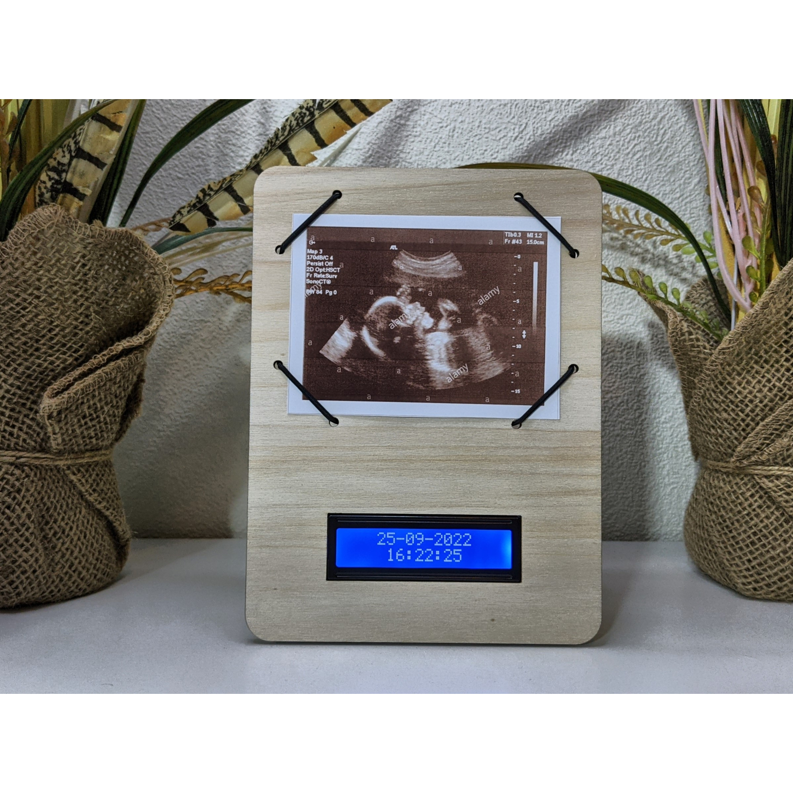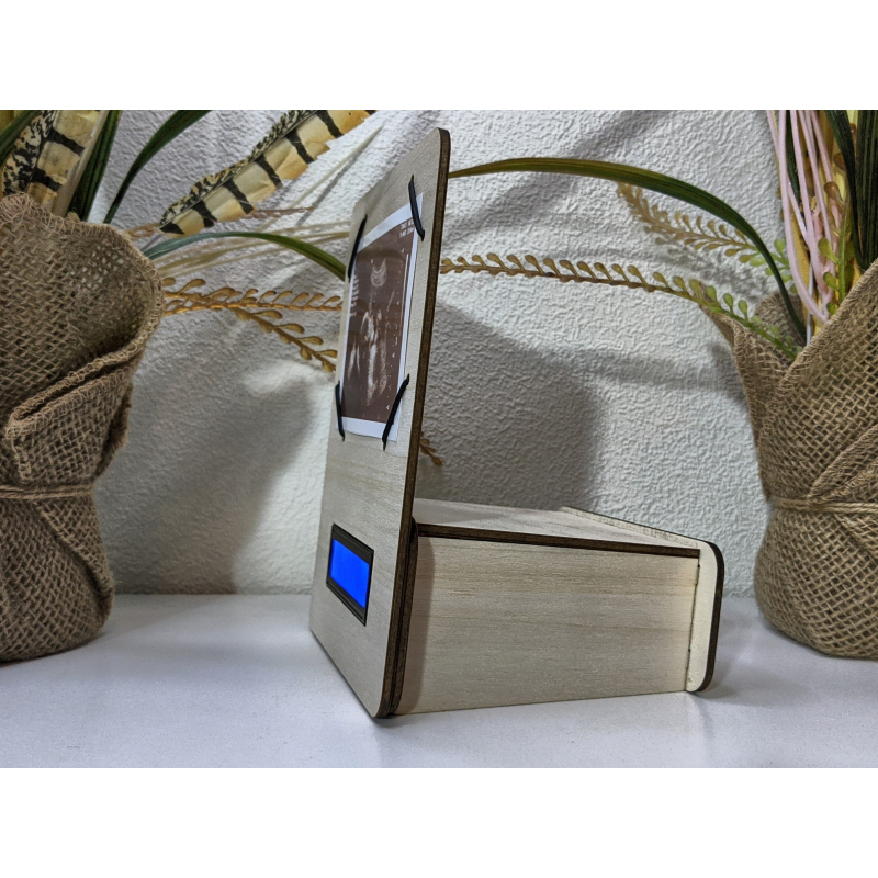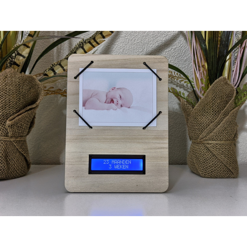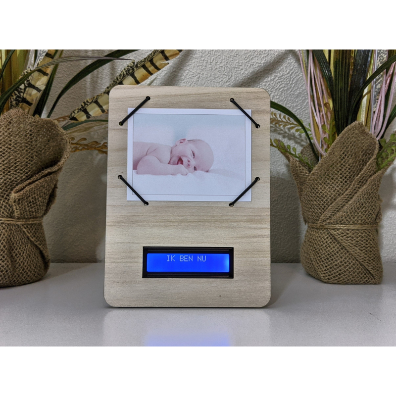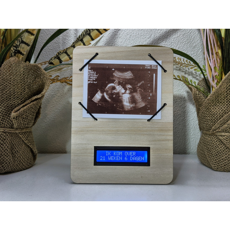 De klok kan voorzien worden van een originele echo foto (afmeting 10 x 7 cm (3.93 x 2.75 inches)) en geeft naast datum en tijd weer hoe lang je al zwanger bent, hoe lang je nog moet en wanneer je bent uitgerekend.