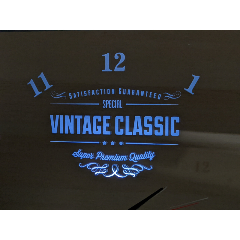 De verlichting in de klok wordt gevoed met een adapter, waardoor er een dun snoertje naar de klok loopt.