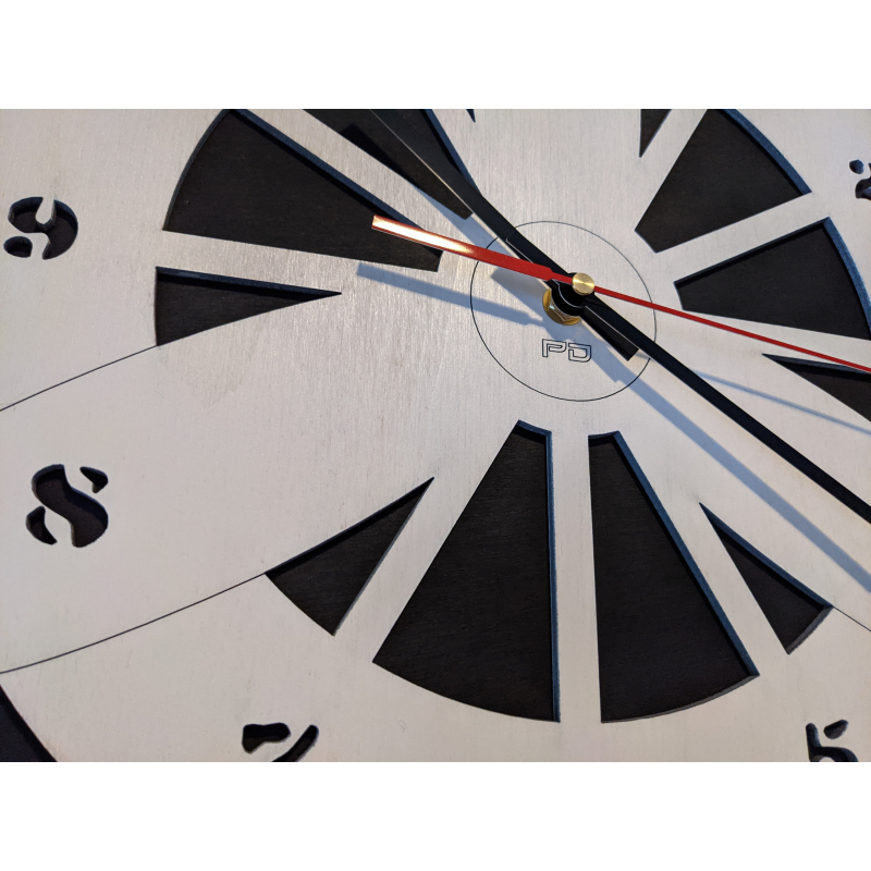 Deze klok is gemaakt van lichtgewicht populieren hout dat met een co2 laser is bewerkt.