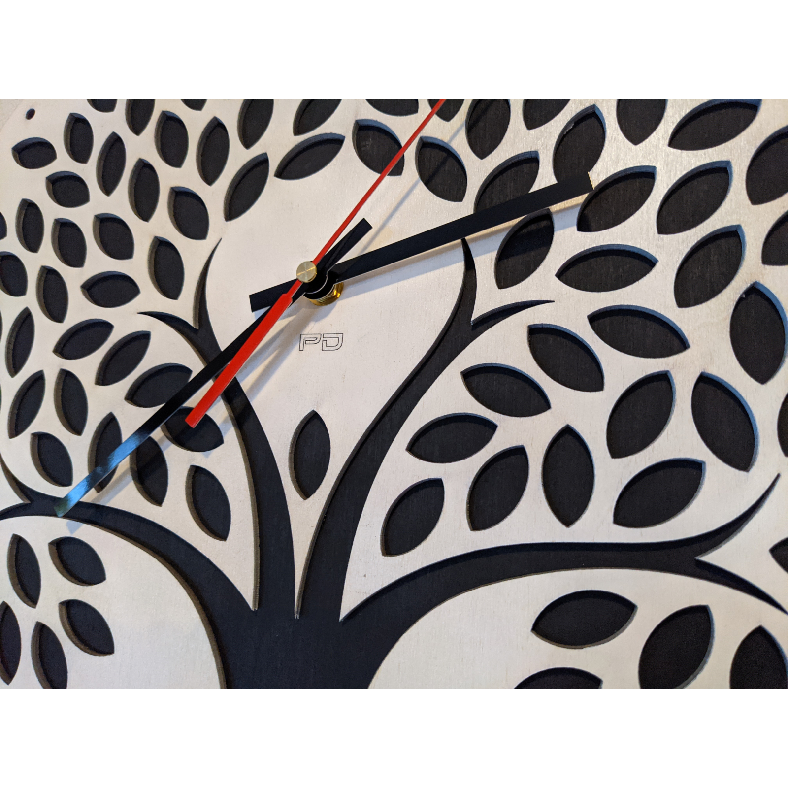 Deze klok is gemaakt van lichtgewicht populieren hout dat met een co2 laser is bewerkt.